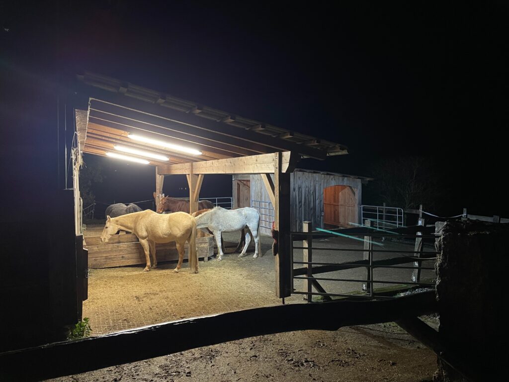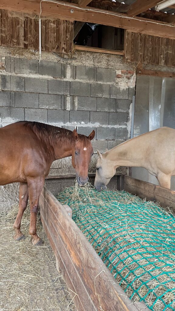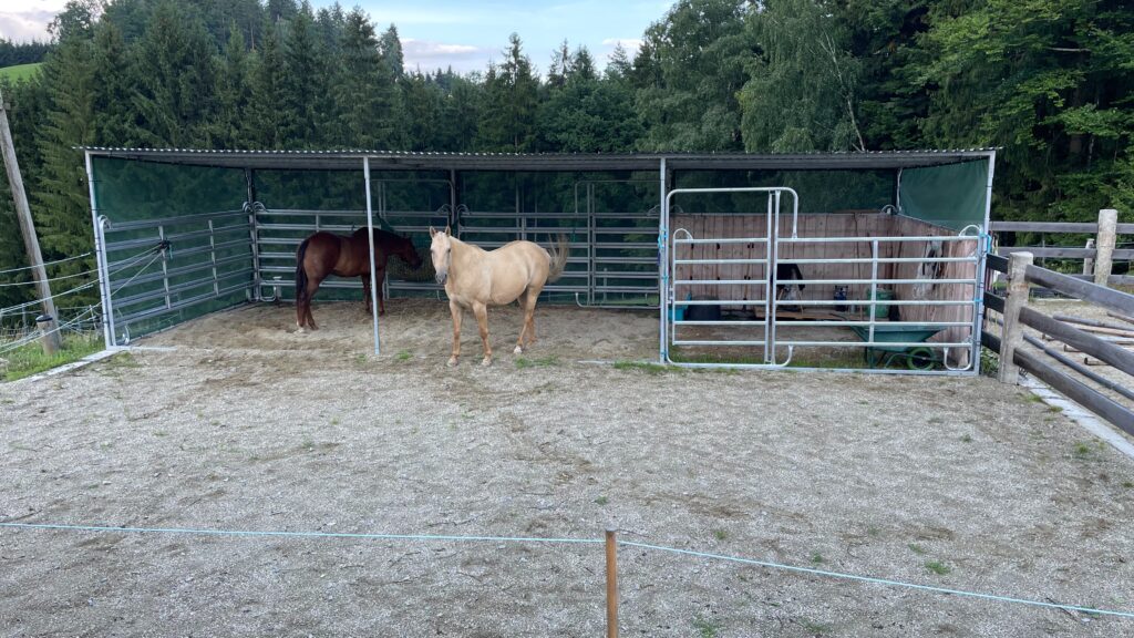 - Mehrere überdachte Heu-Fressplätze, damit niemand zu kurz kommt ☺️