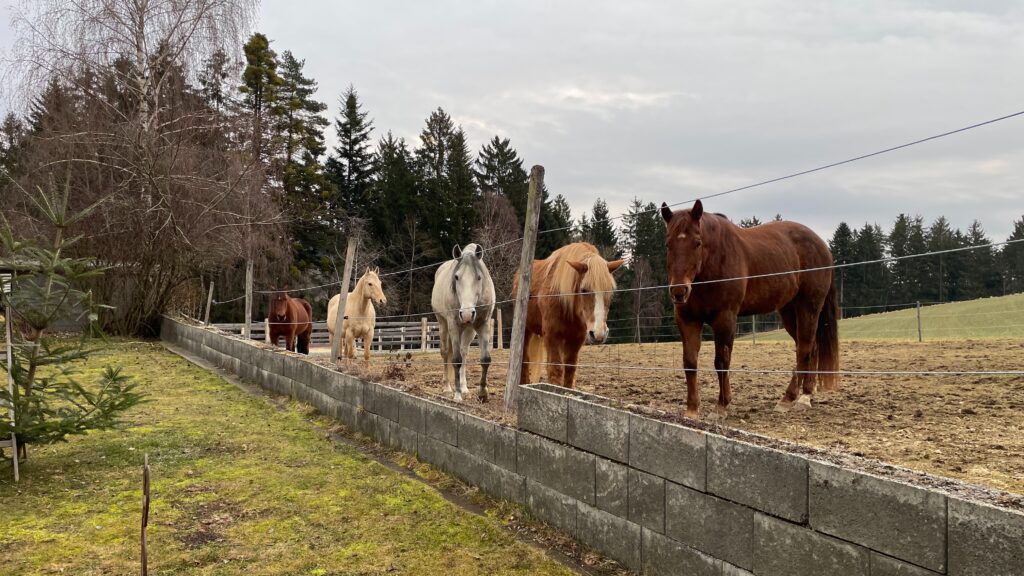 - Kleine, harmonische, gemischte Herde (max. 6 Pferde)